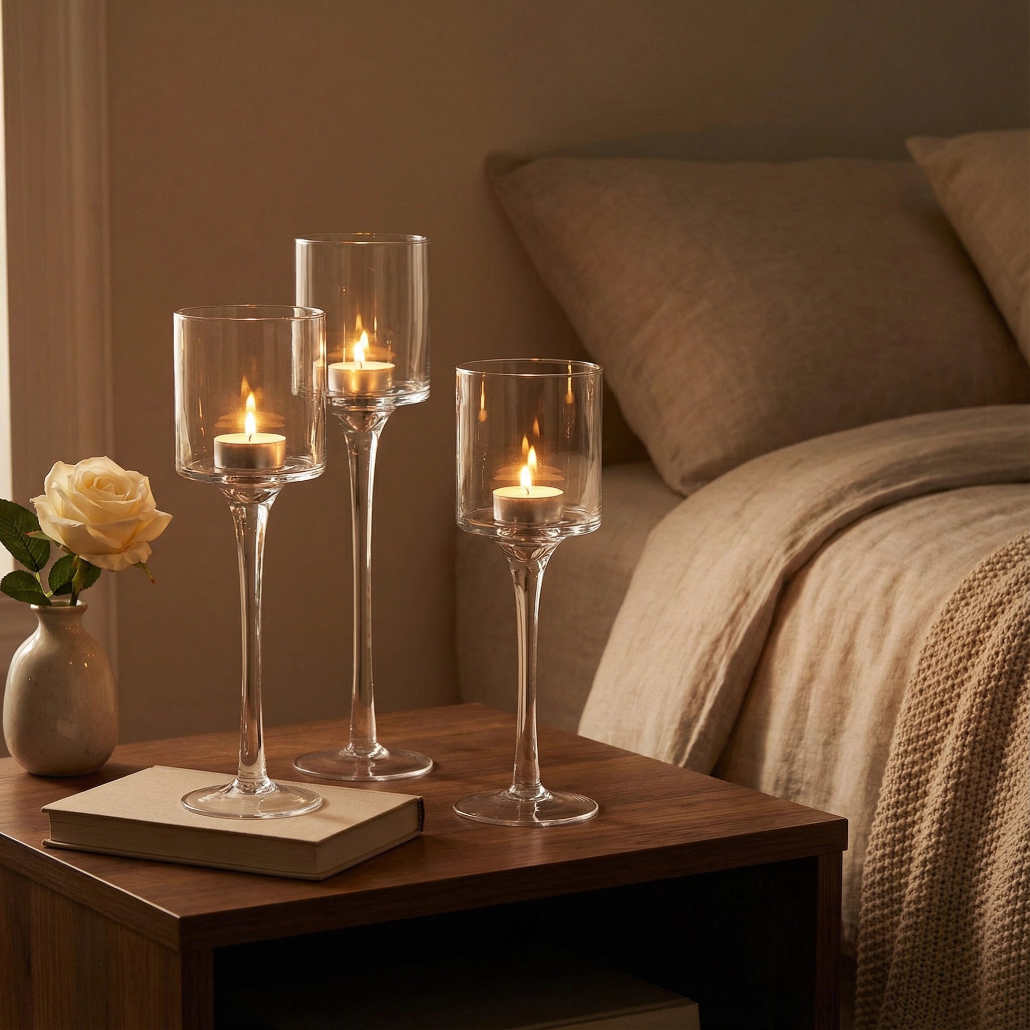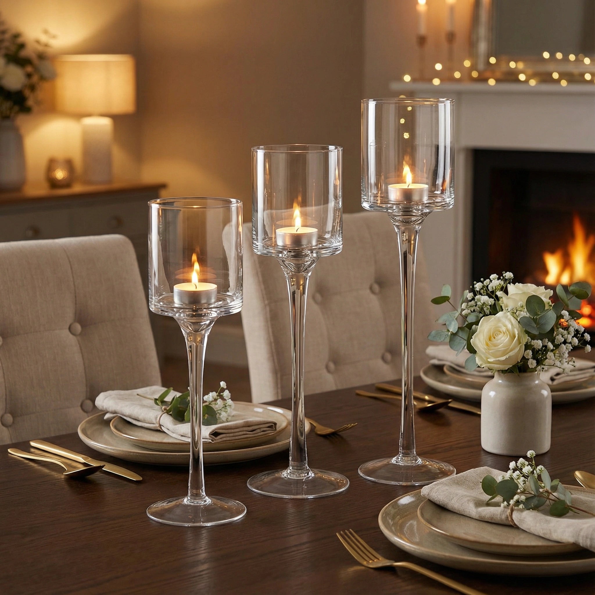 3-Piece Glass Tealight Candle Holders, Elegant Table Centerpiece Set
