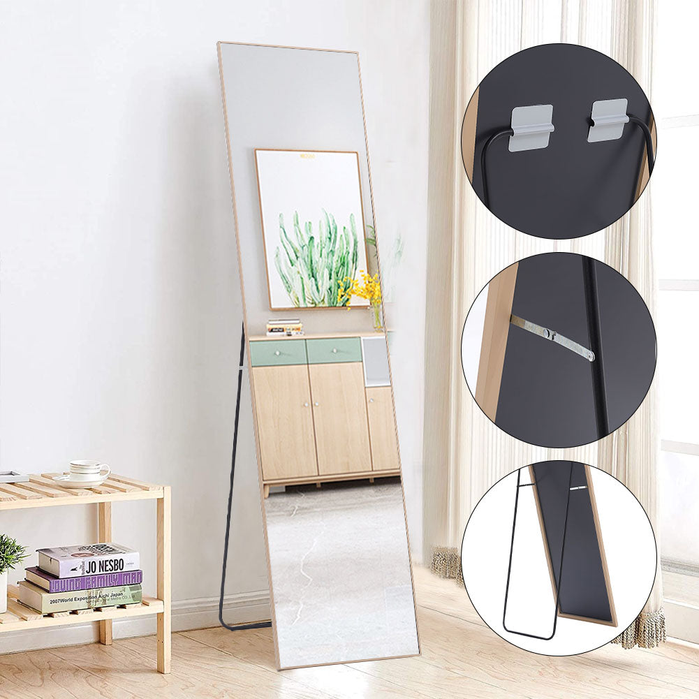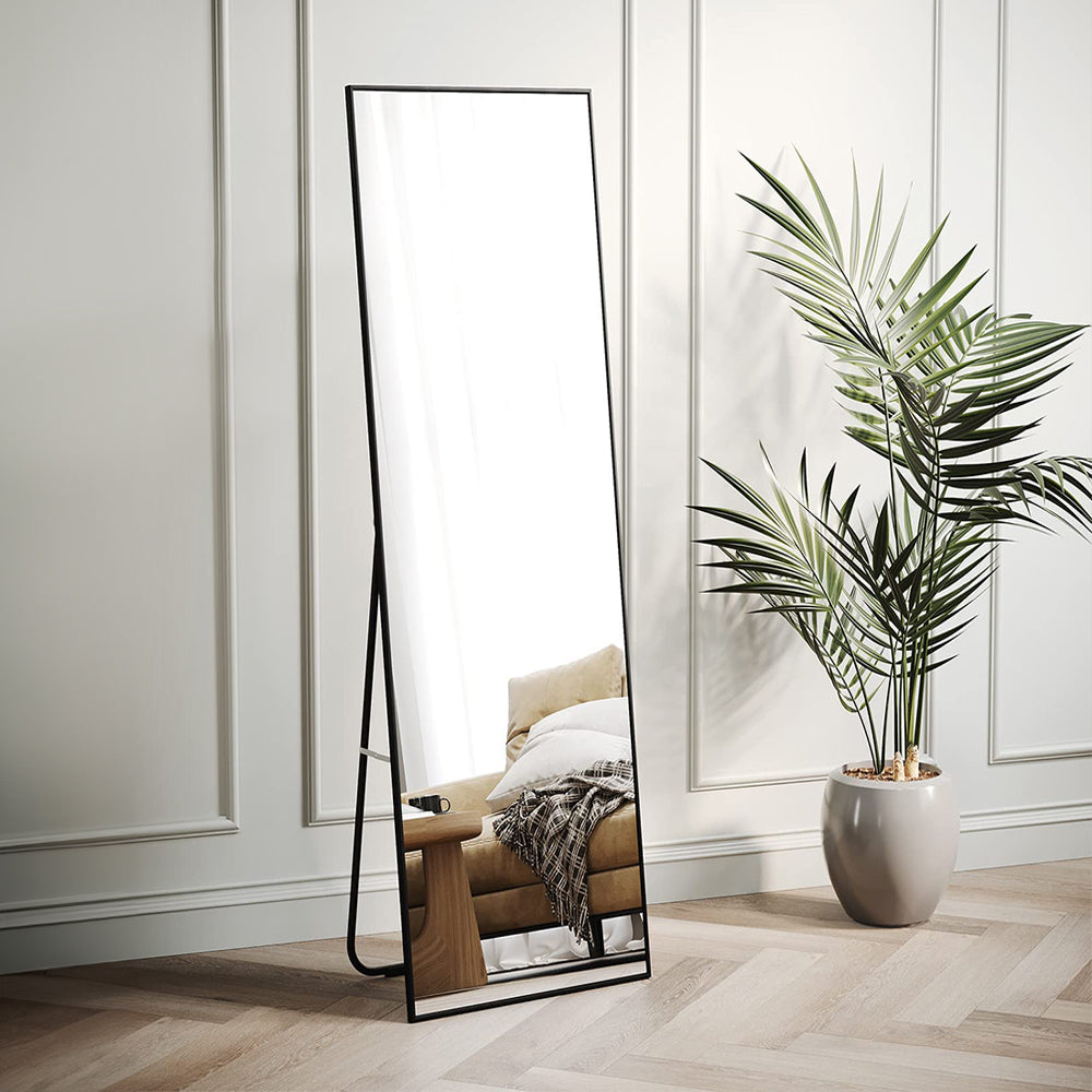 Refresh your space with this sleek full-length mirror by Lifeideas, designed to bring both function and modern flair to your home. Featuring a slim metal frame with clean lines, this versatile mirror offers a minimalist aesthetic that works beautifully in bedrooms, entryways, or living areas. Its lightweight yet durable construction makes it easy to install on the wall or stand freely with the built-in bracket—an ideal solution for compact homes or rental spaces where flexibility matters. A practical piece that helps open up your space while doubling as a stylish focal point.
