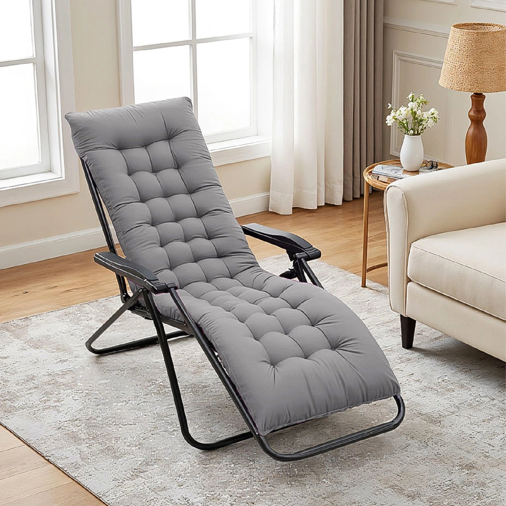 Crafted with UV-resistant materials and equipped with side ties, it stays securely in place, making it ideal for loungers in sunny or breezy settings. Whether you're reading, sunbathing, or simply unwinding, this cushion transforms your outdoor seat into a cozy retreat.