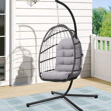 Waterproof Tufted Swing Seat Cushion in Light Grey – Outdoor Egg Chair Pad with Secure Straps & Thick Filling