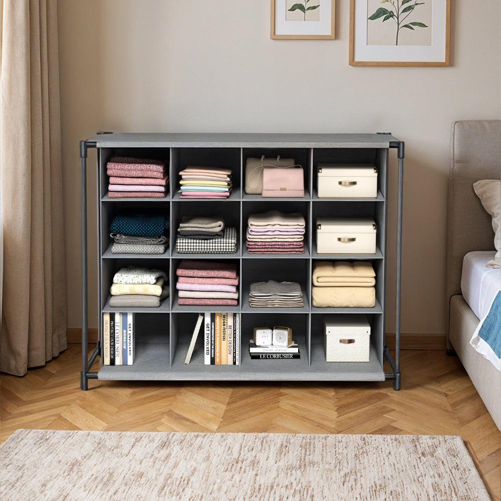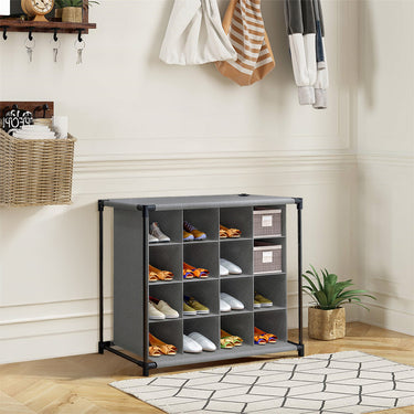 4-Tier Shoe Storage Rack – 16-Grid Freestanding Organizer with Fabric Cover and Metal Frame
