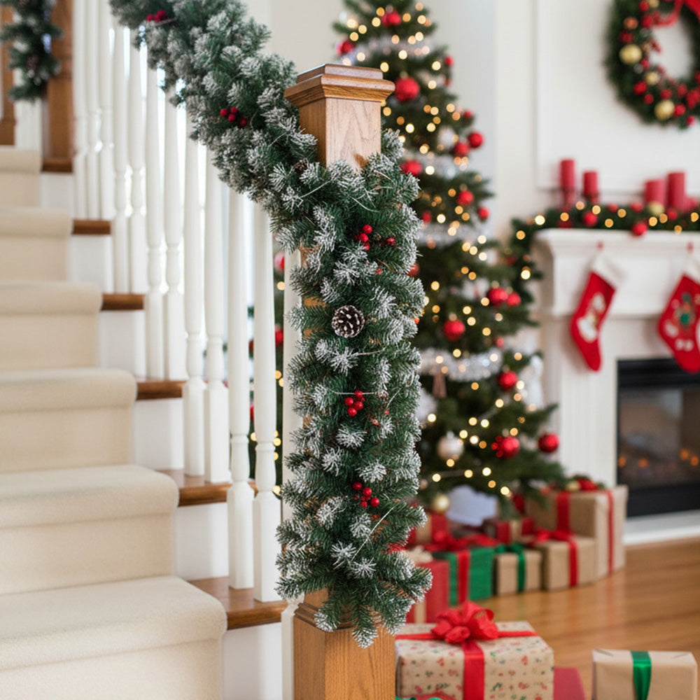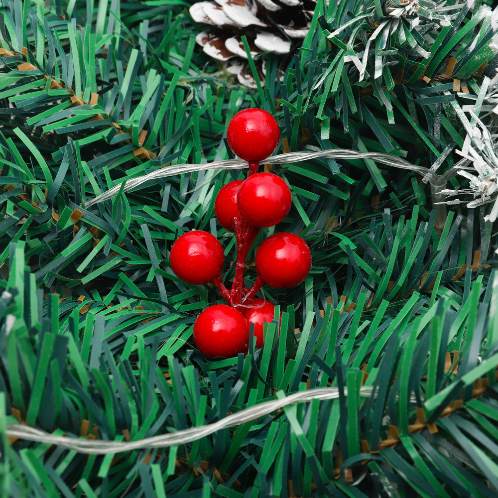 Create a festive atmosphere in any room with this 270cm artificial spruce garland from Lifeideas. Designed with frosted green foliage, pine cones, and red berries, this garland brings vibrant holiday charm to your space. Its warm white LED lights add a cozy glow to your decor, making it perfect for draping over door frames, mantels, or banisters. The pre-lit design saves you time while decorating, allowing you to enjoy the season's spirit with minimal effort. This stunning garland is sure to be a centerpiece in your Christmas celebrations.