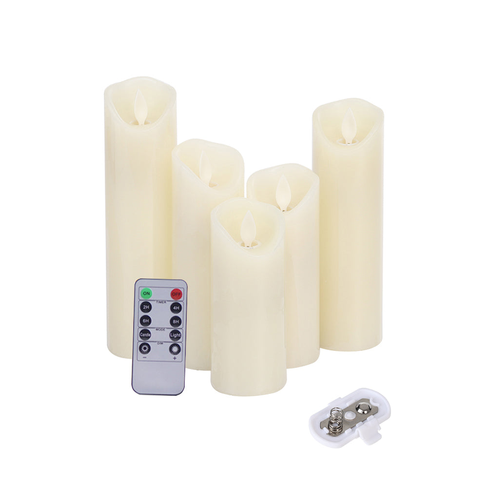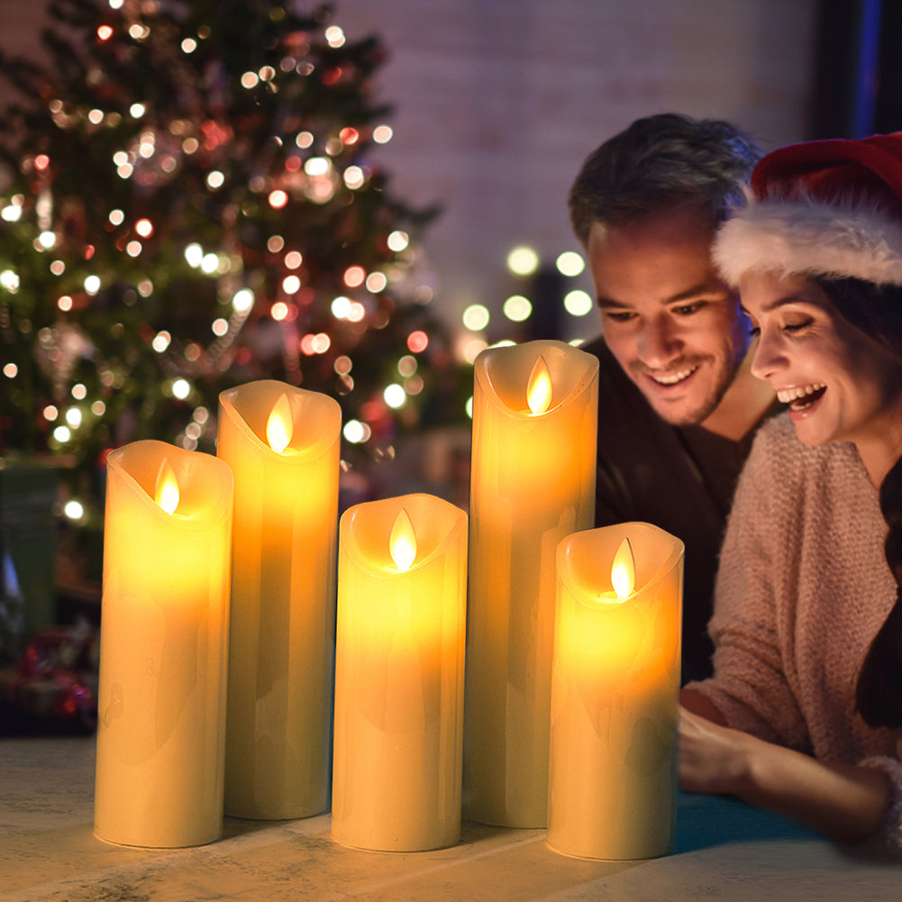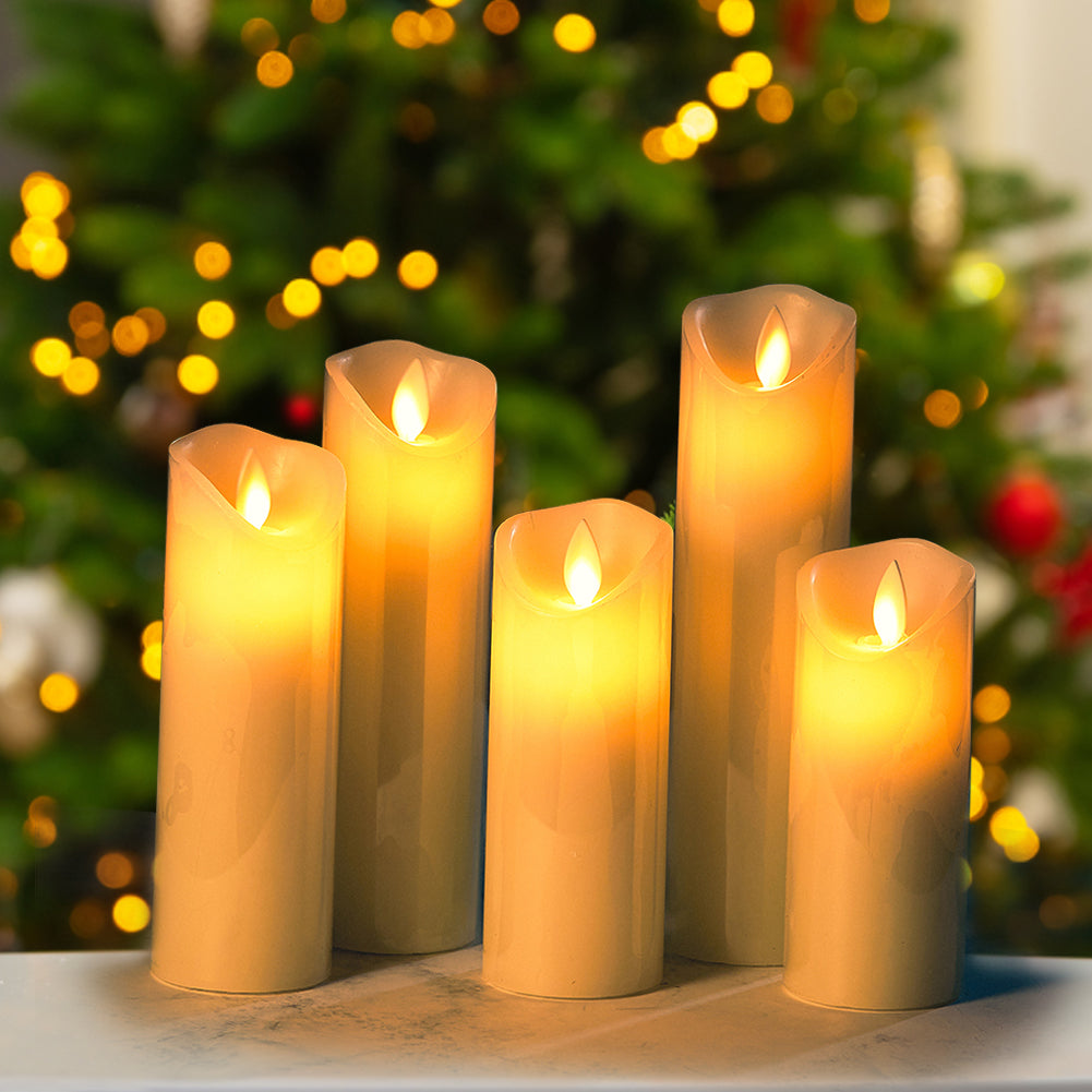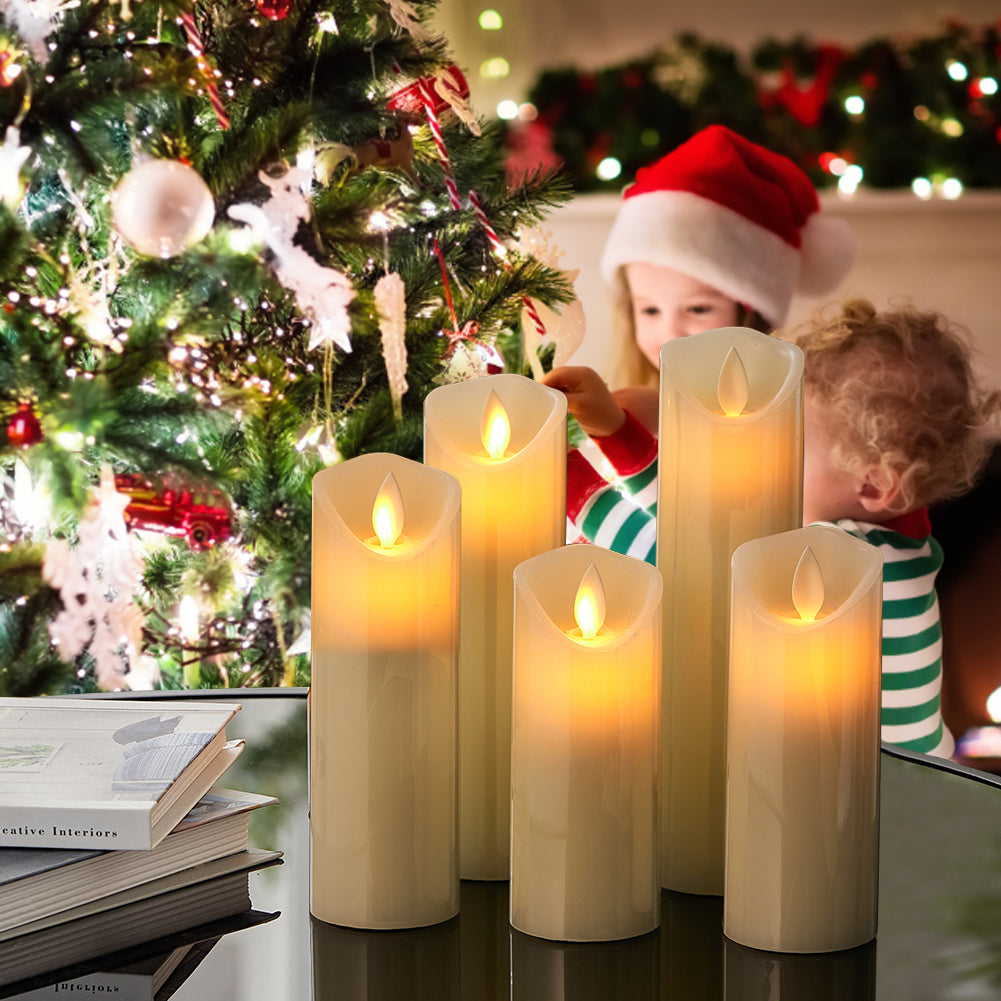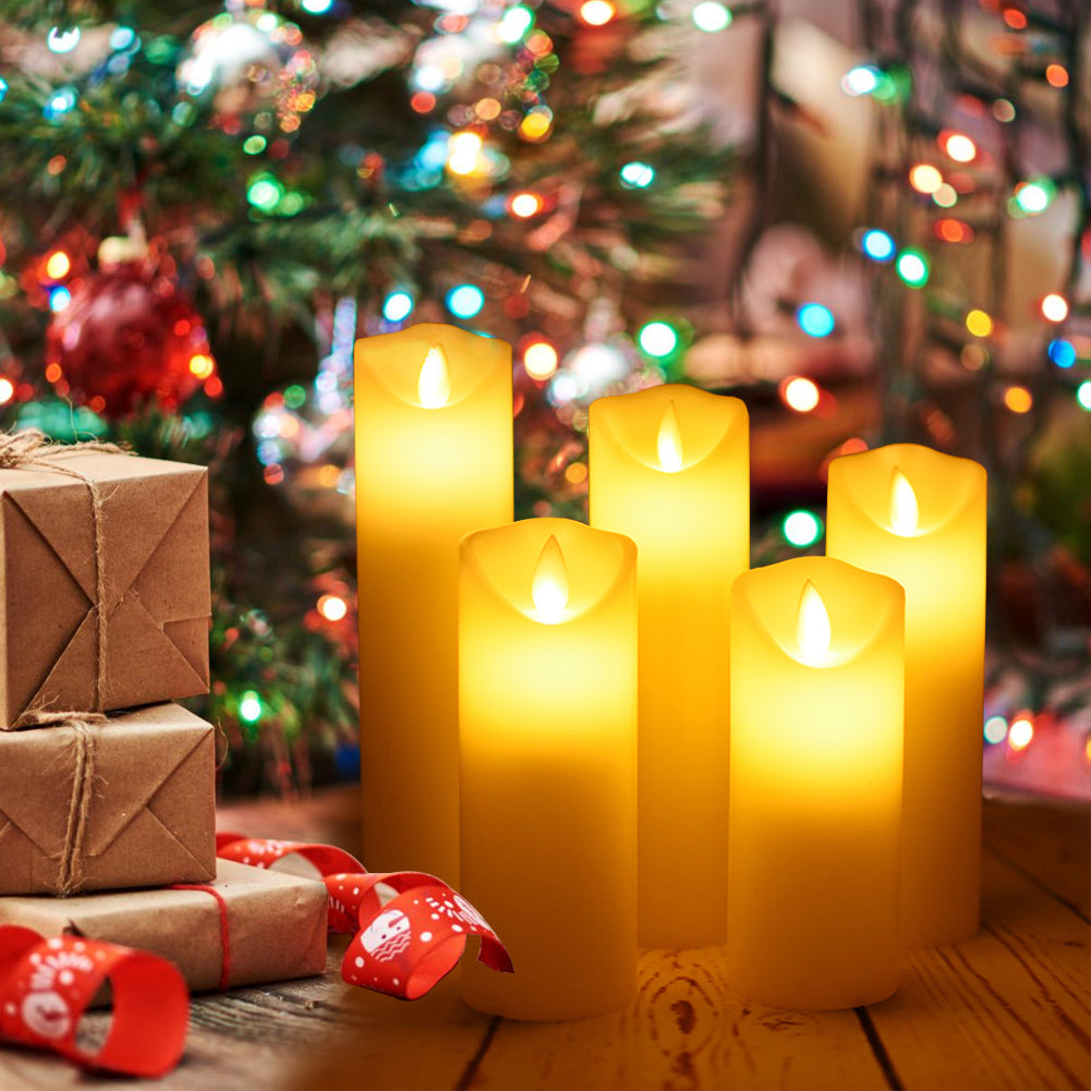5-Piece Remote-Controlled LED Flameless Candle Set – Realistic Flickering Pillars