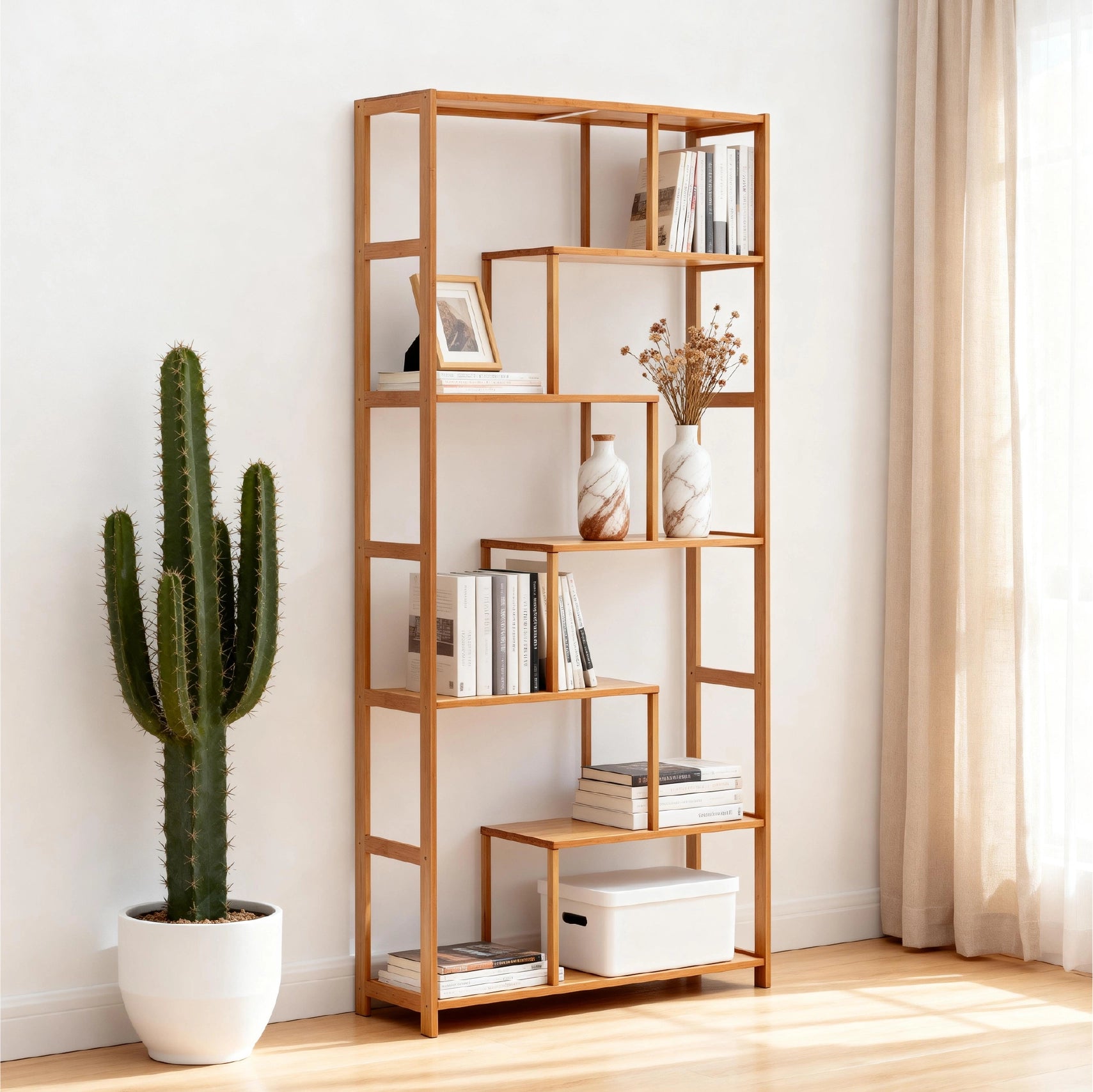 Perfect for living rooms, hallways, offices, or any space in need of vertical storage, the natural wood finish harmonizes with a variety of interior styles. Quick to assemble with clear instructions, this versatile shelving unit is both functional and decorative, helping you keep your space organized and visually appealing.