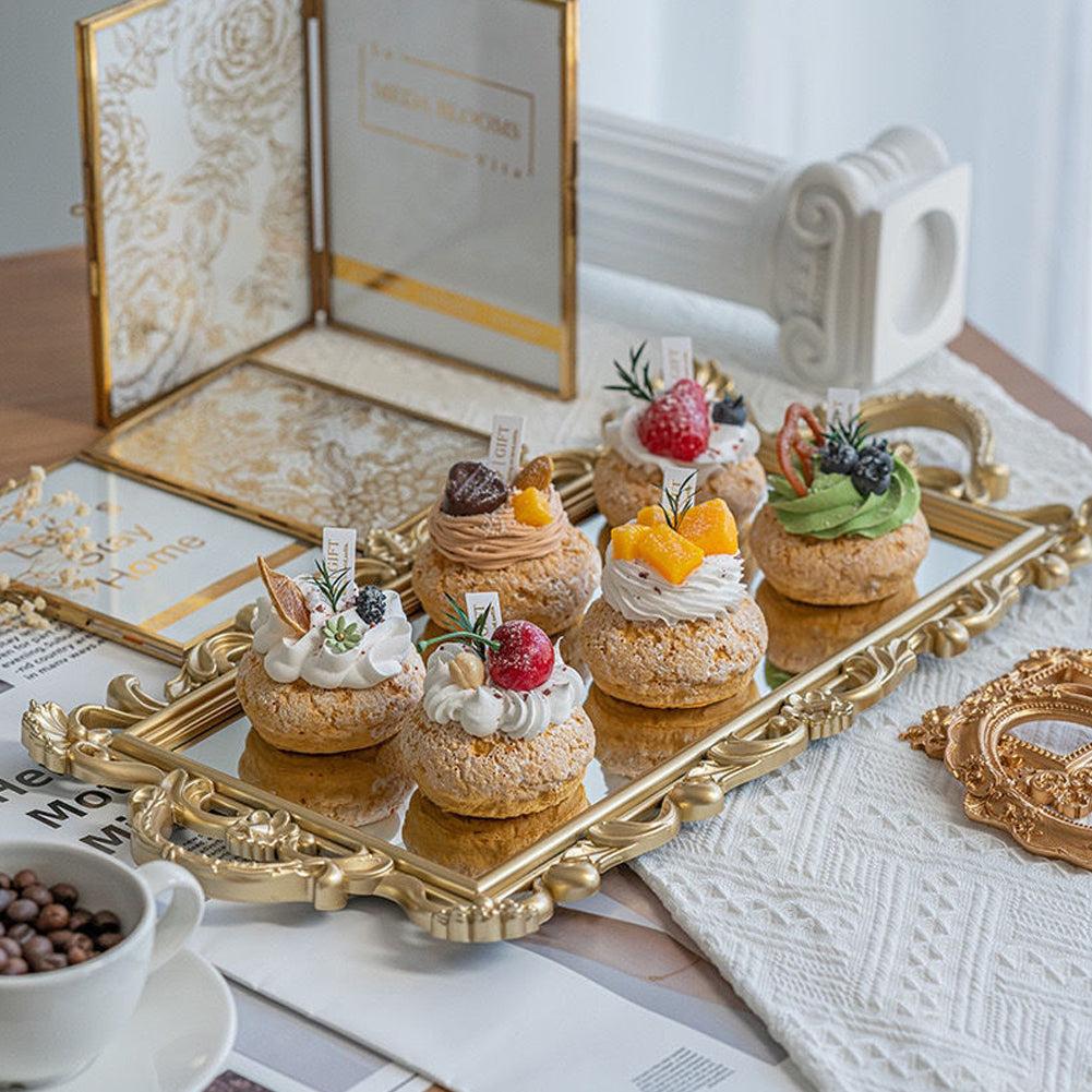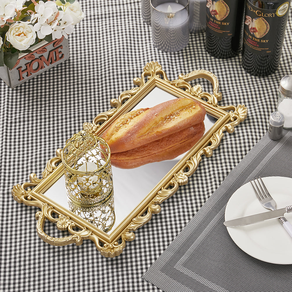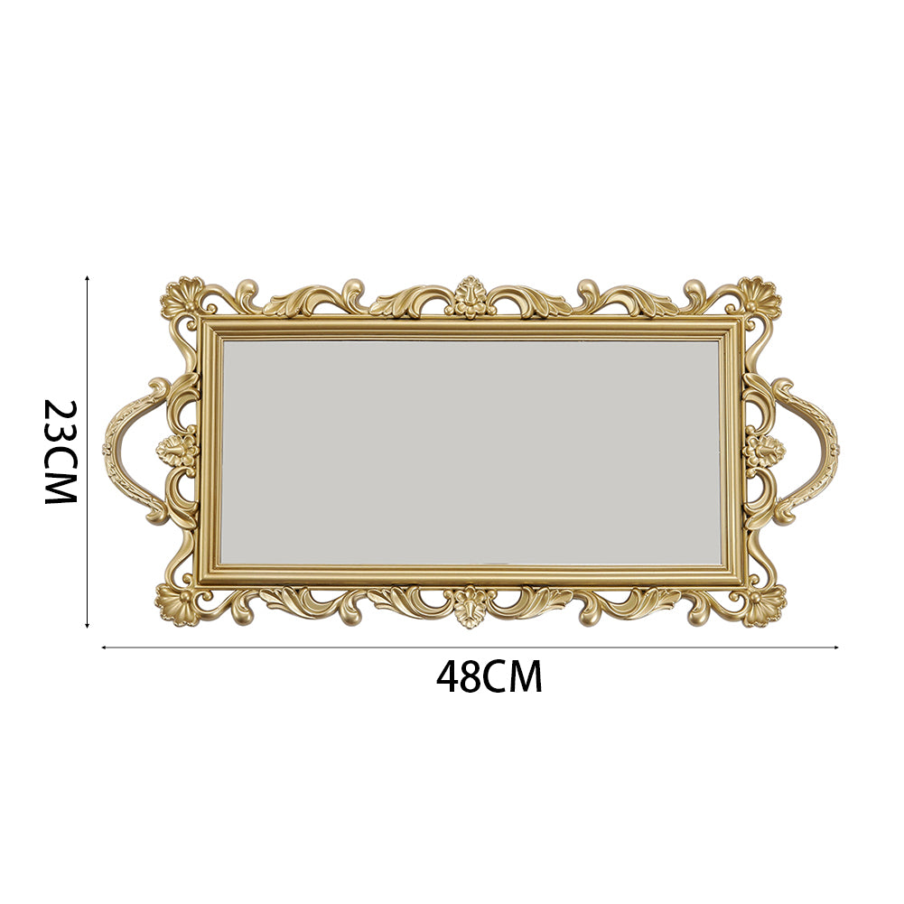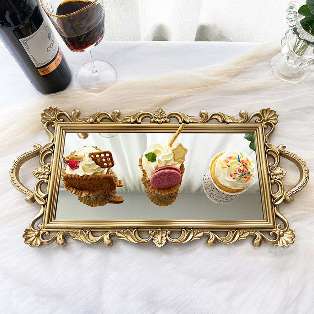 Elegant Mirror Base Serving Tray with Gold Decorative Border and Handles – Stylish & Functional Home Accent