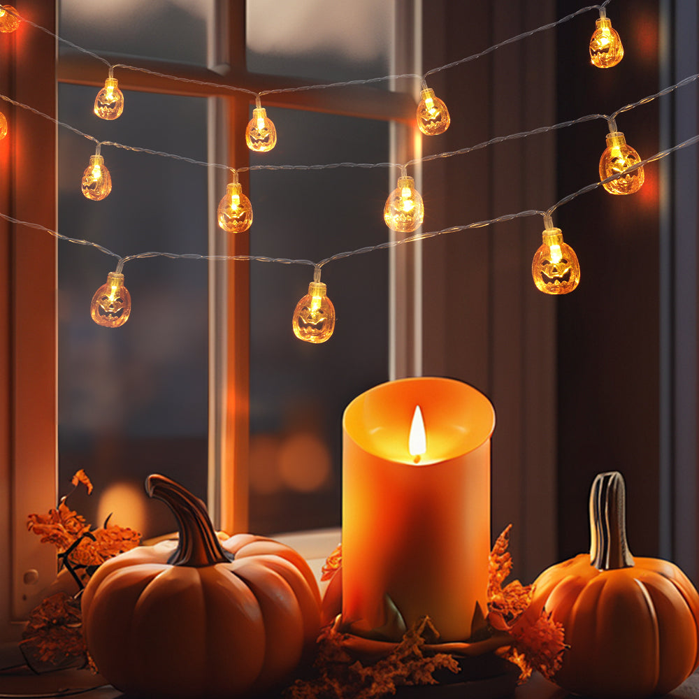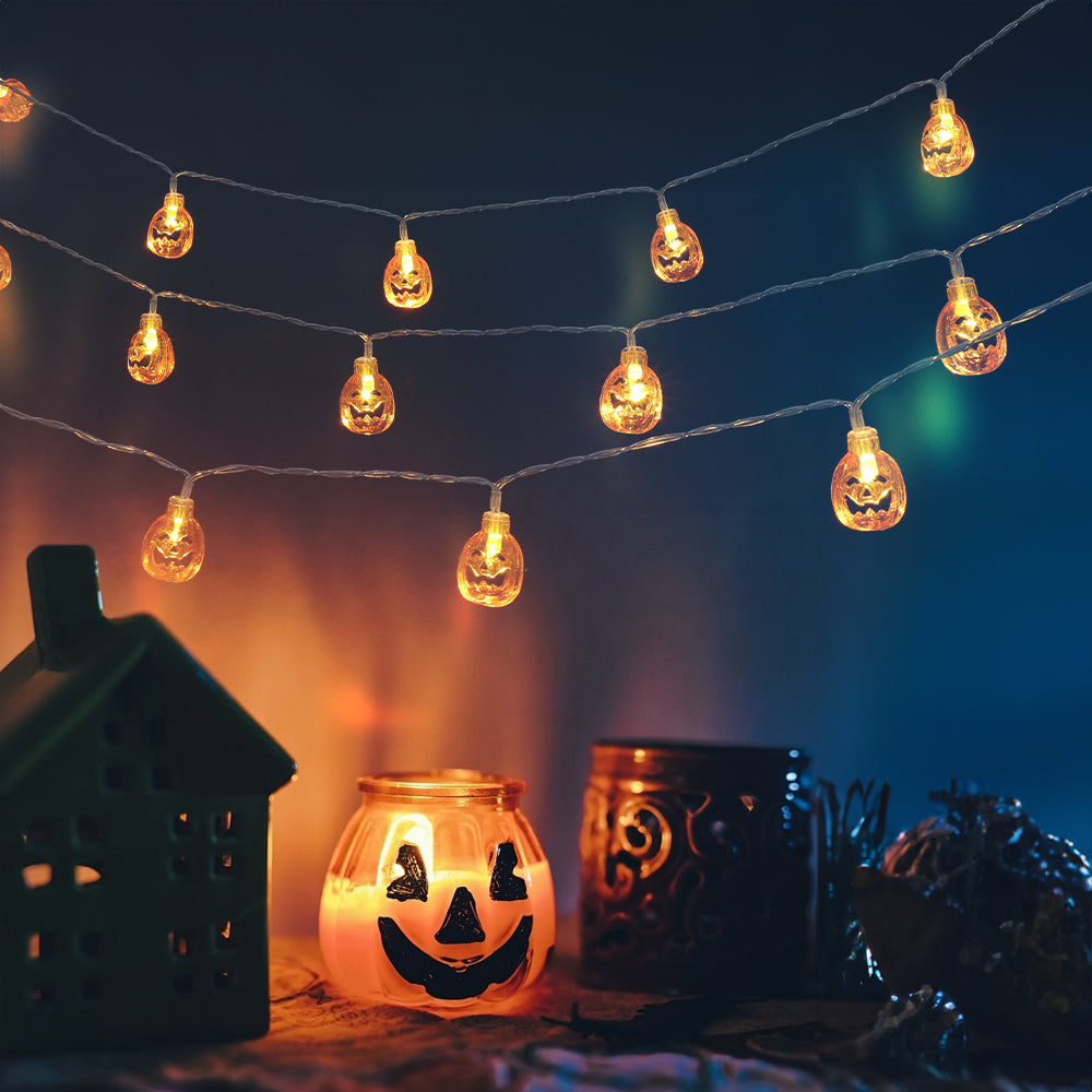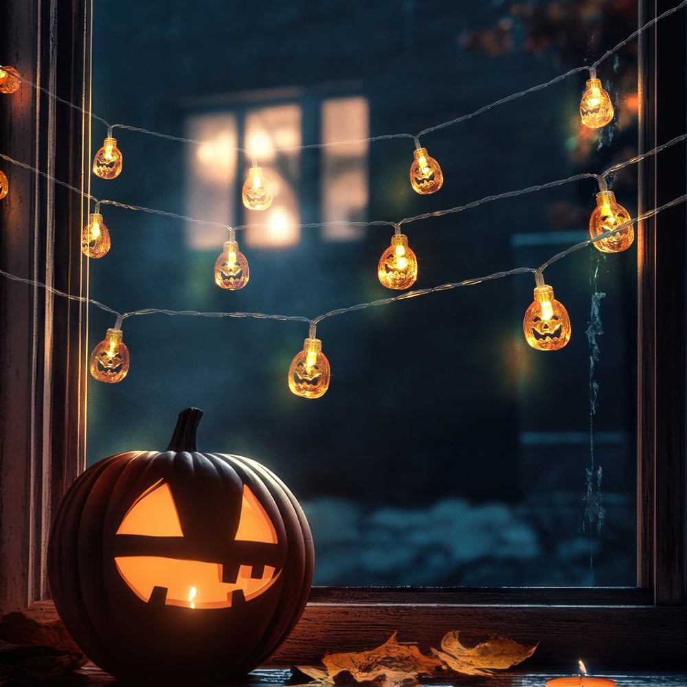 Halloween Pumpkin LED String Lights – Battery Operated Decorative Lights for Indoor & Outdoor Use