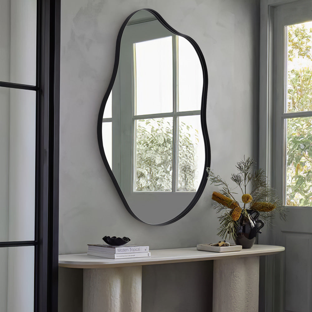 Irregular Wall Mirror – Modern Black Metal Frame, Artistic Accent for Hallways & Living Rooms
