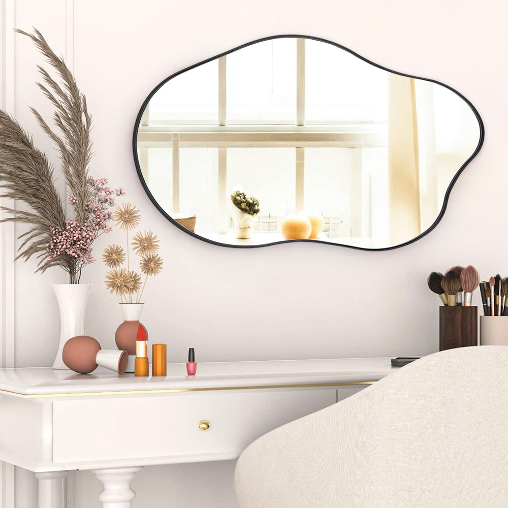 Add a touch of modern elegance and artistic flair to your home with the Lifeideas Irregular Wall Mirror. Featuring a fluid, asymmetrical shape and a sleek black iron frame, this decorative mirror transforms any plain wall into a captivating focal point. Its design reflects natural light to brighten up small spaces—making it a perfect fit for entryways, bathrooms, or living areas. Both stylish and functional, this shatterproof mirror enhances your space while expressing your personal taste.