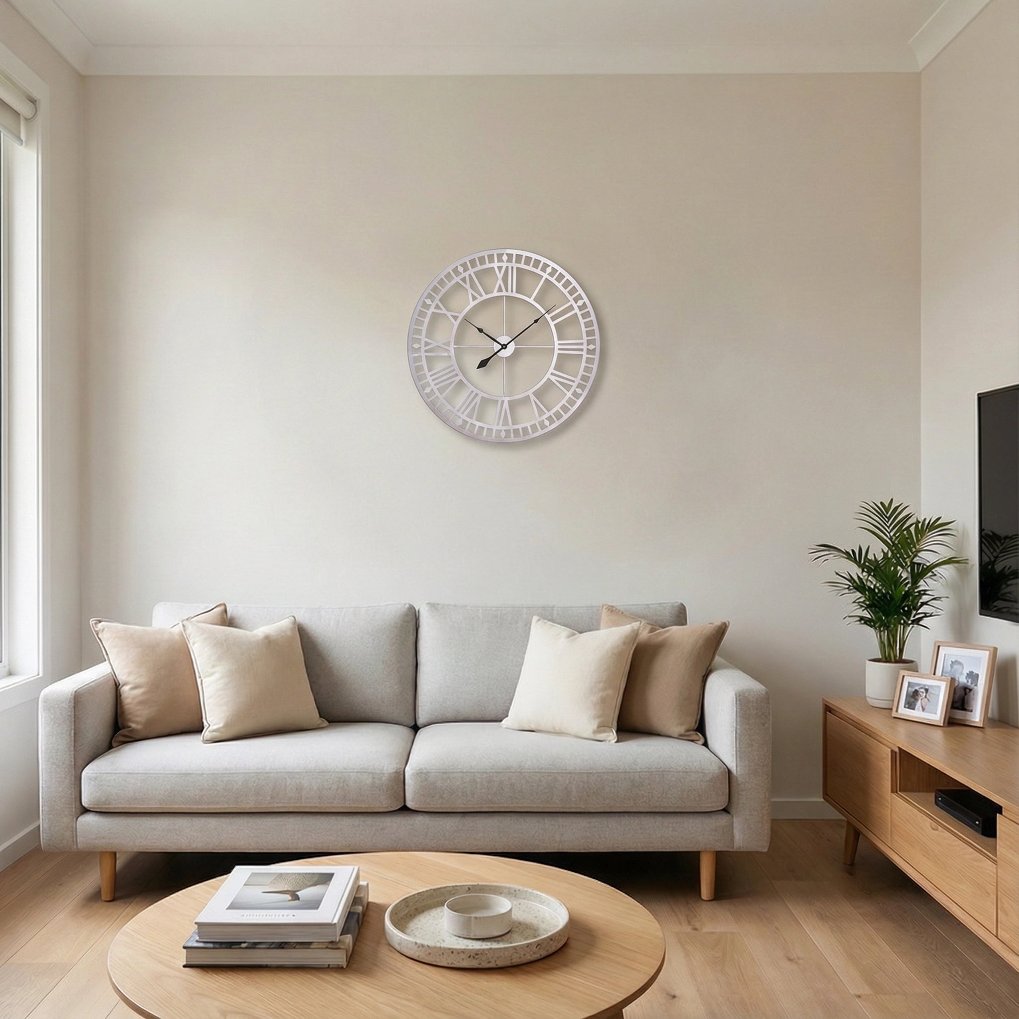 Oversized Metal Wall Clock – Modern Roman Numerals, Vintage-Inspired Design