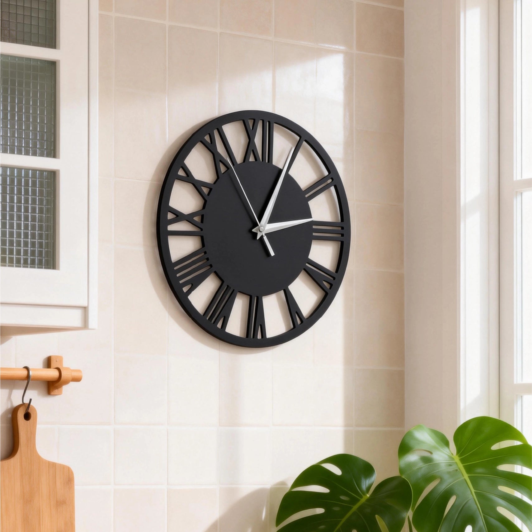 Silent Wooden Wall Clock – Decorative Roman Numeral Design with Metal Hands