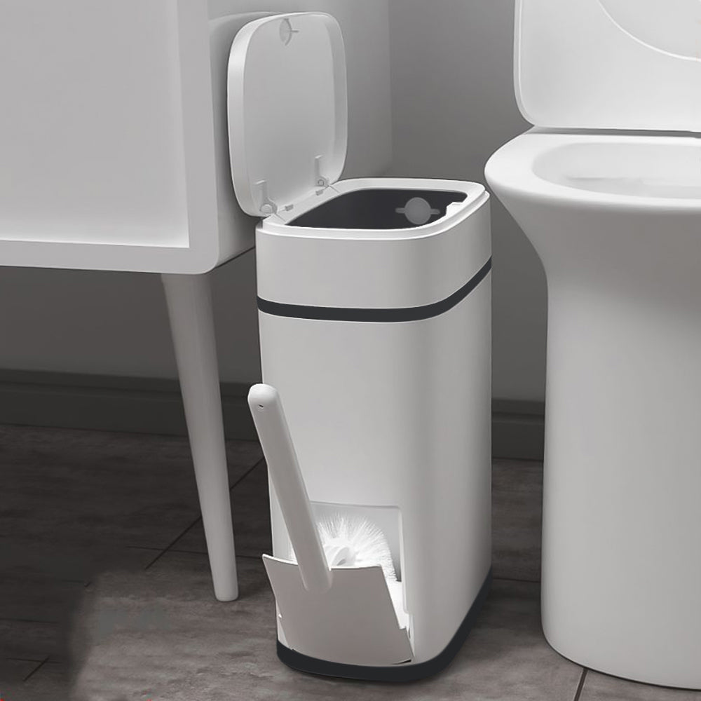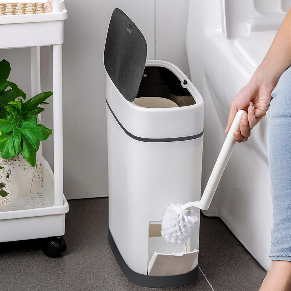 Slim Bathroom Trash Can with Built-In Toilet Brush – Dual Bag Design, Odor-Sealing Lid, 14L