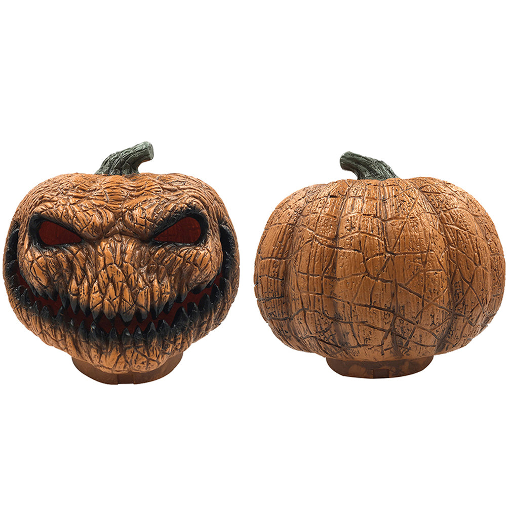 Made from durable plastic with a distressed finish, this pumpkin is perfect for both indoor and outdoor displays. Whether you're hosting a Halloween party or simply looking to add a bit of spooky charm to your home, this pumpkin is a must-have!