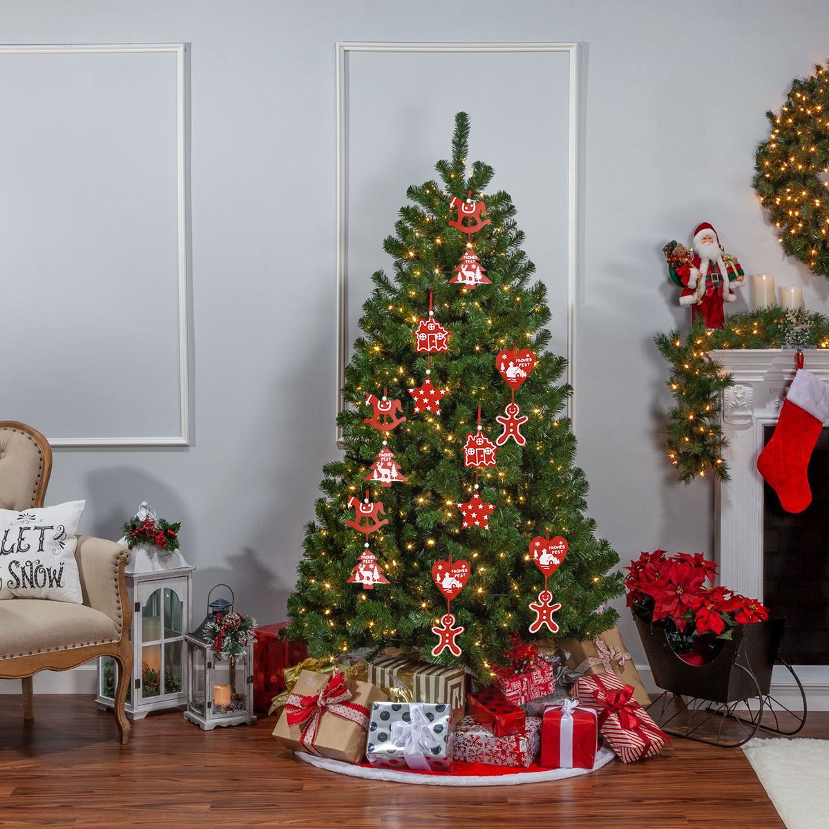 Add a warm, handcrafted touch to your holiday decor with this charming wooden ornament set by Lifeideas. Featuring a delightful mix of classic holiday shapes—such as hearts, stars, cottages, trees, and gingerbread figures—these ornaments bring a nostalgic, festive feel to your Christmas tree or seasonal display.